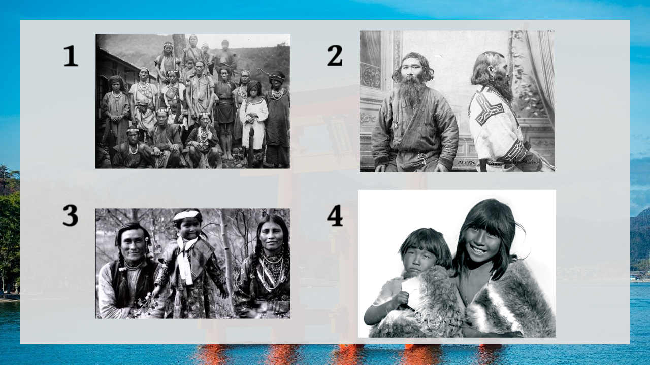 1 is the Bunun people of Taiwan, 3 is the Native Americans of North America, 4 is the Selk’nam people of the southern tip of South America, and 2 is the Ainu people of Japan.